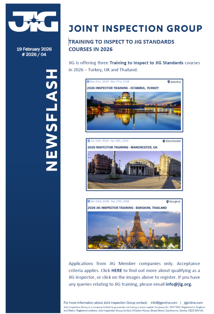 Newsflash – Training to Inspect to JIG Standards courses in 2026